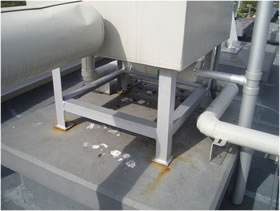 屋上の給水タンクの架台足元から錆が発生しています。 →錆除去後、足元に雨水が入らないようにシール処理をお願いしました。 |