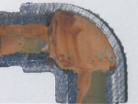 | 内視鏡による配管内部調査 | 超音波による配管肉厚測定 |